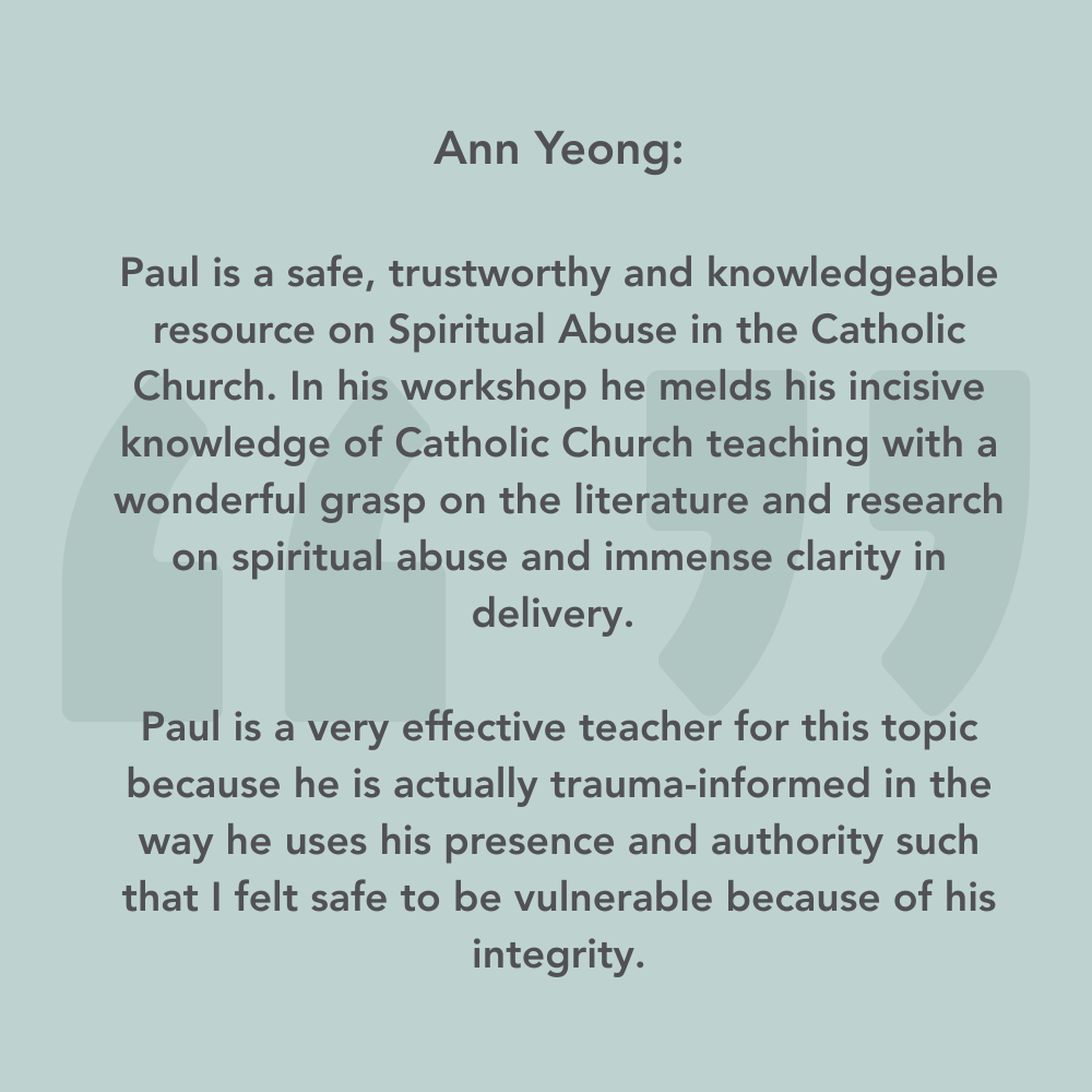 Join me for an online workshop focused on recognizing, preventing, and responding to spiritual abuse in the Catholic Church.