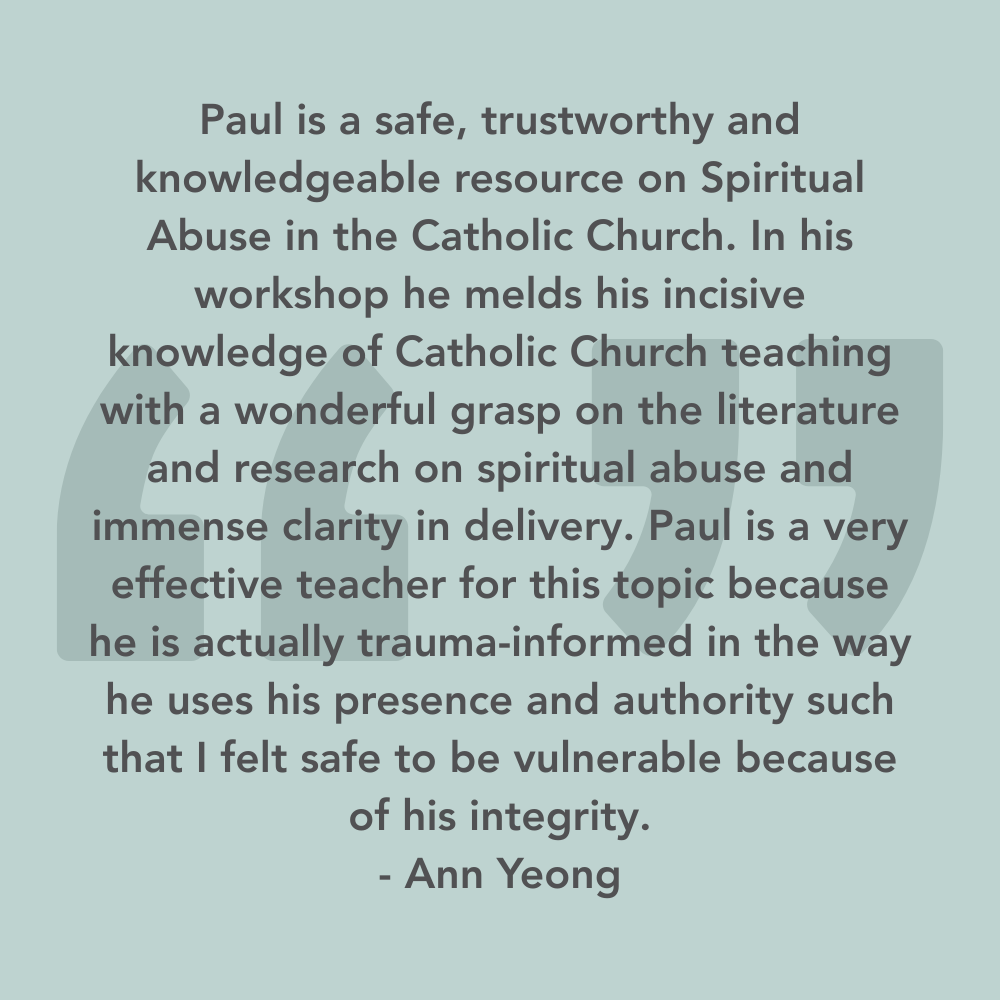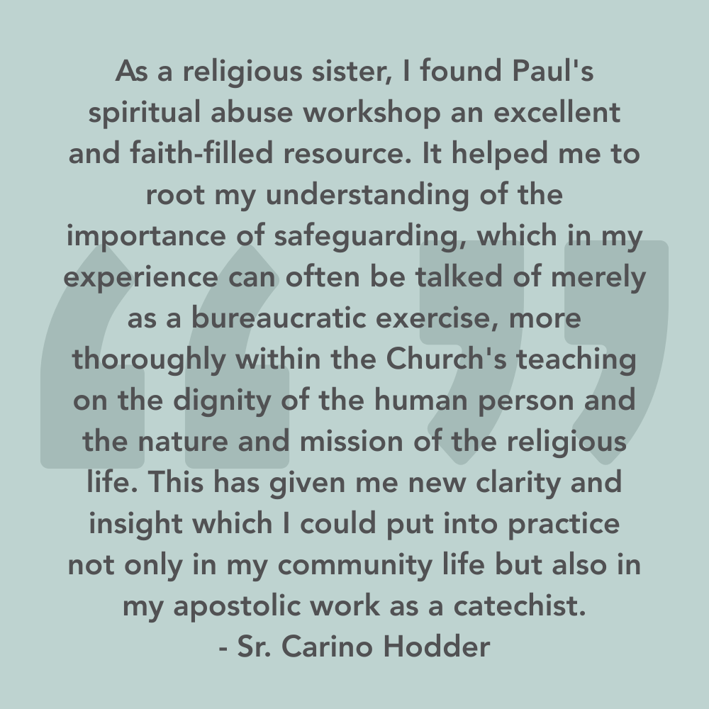 Join me for an online workshop focused on recognizing, preventing, and responding to spiritual abuse in the Catholic Church.