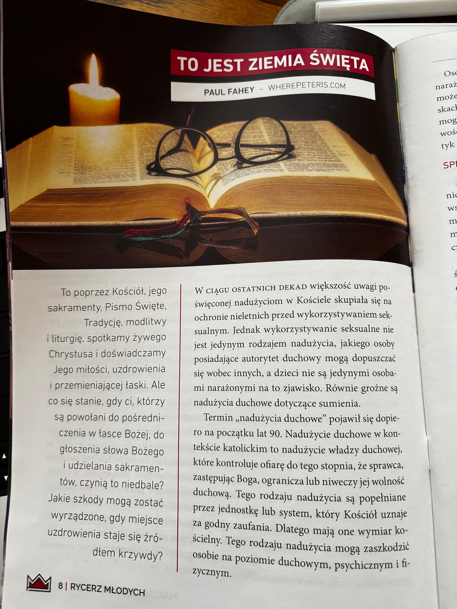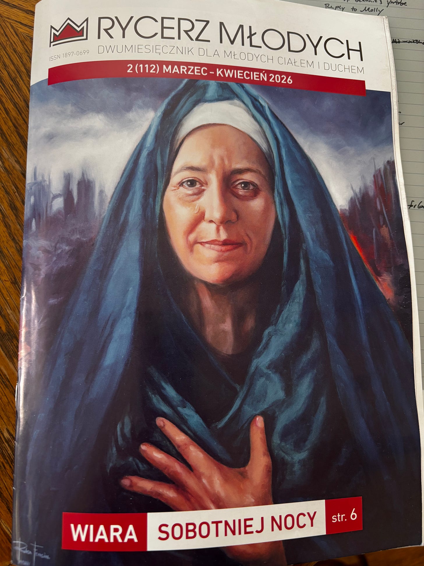 I was sent a copy of Rycerz Młodych (Young Knight), a Polish Catholic magazine published by the Franciscan Fathers Publishing House in Niepokalanów, Poland. The same Niepokalanów monastery that Maximilian Kolbe founded.